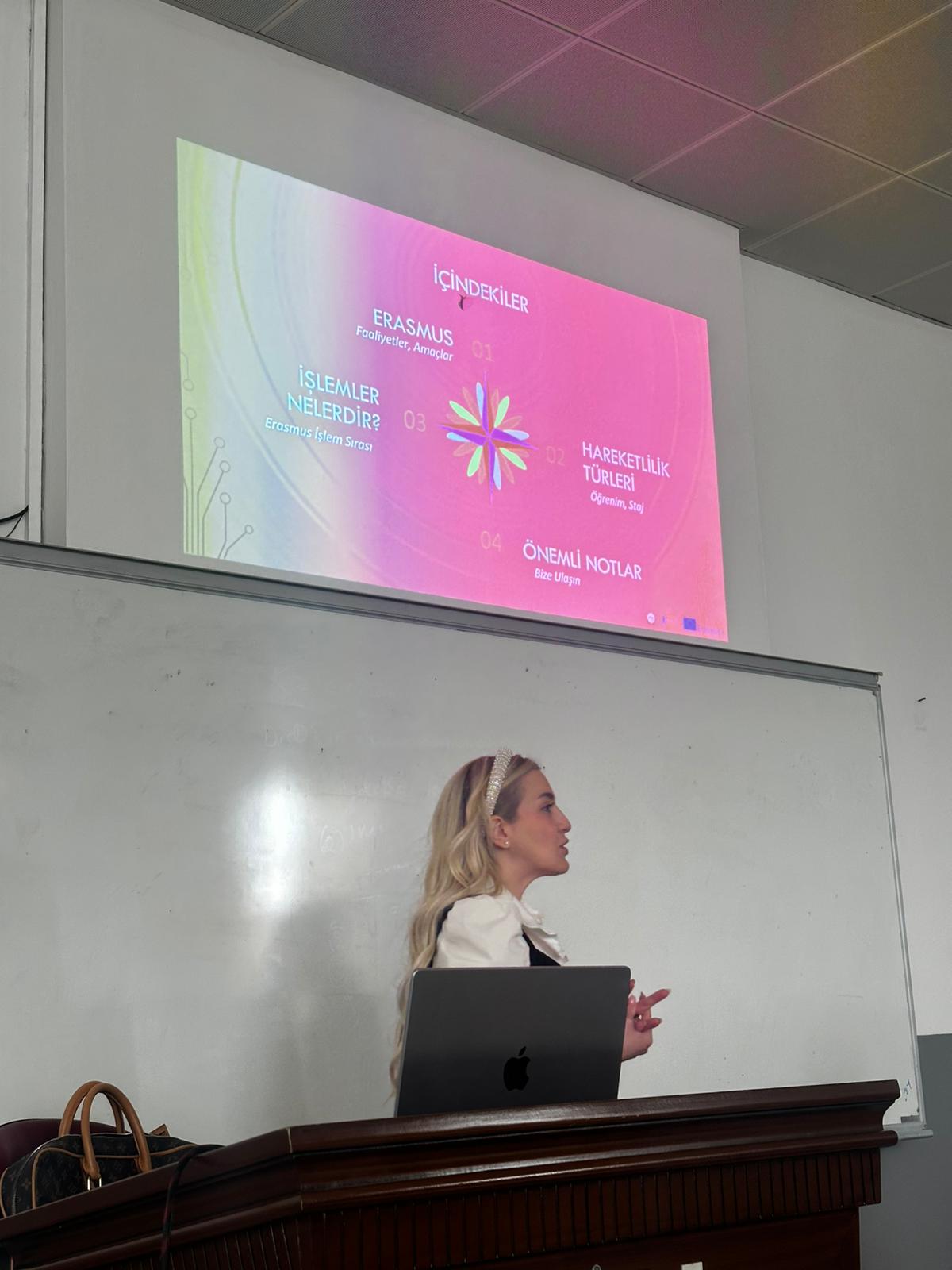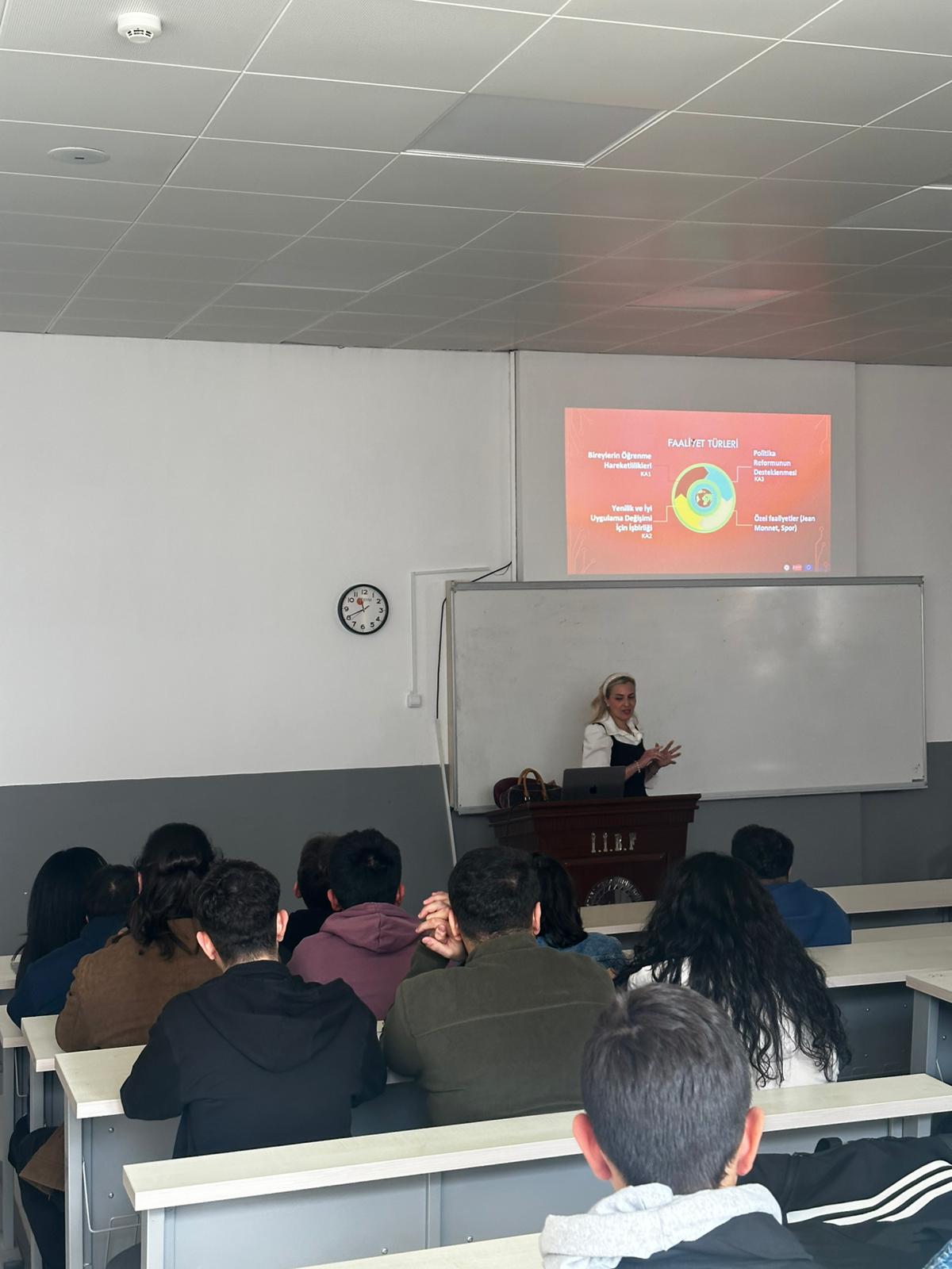 07 Ocak 2026 tarihinde İktisadi ve İdari Bilimler Fakültesi'nde, öğrencilerin Erasmus+ programı hakkında bilgilendirilmesi amacıyla sunum gerçekleştirildi.