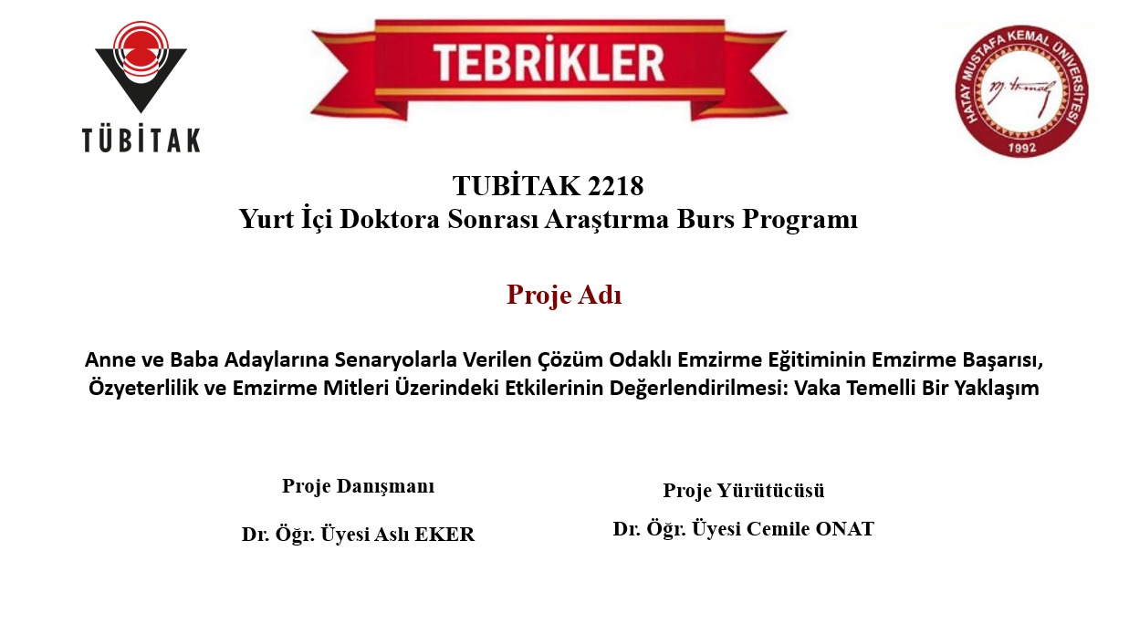 Üniversitemiz öğretim elemanlarından Dr. Öğr. Üyesi Cemile ONAT’ın yürütücülüğünü üstlendiği, TÜBİTAK 2218 – Yurt İçi Doktora Sonrası Araştırma Burs Programı kapsamında desteklenmeye hak kazanan proje kabul edilmiştir.
