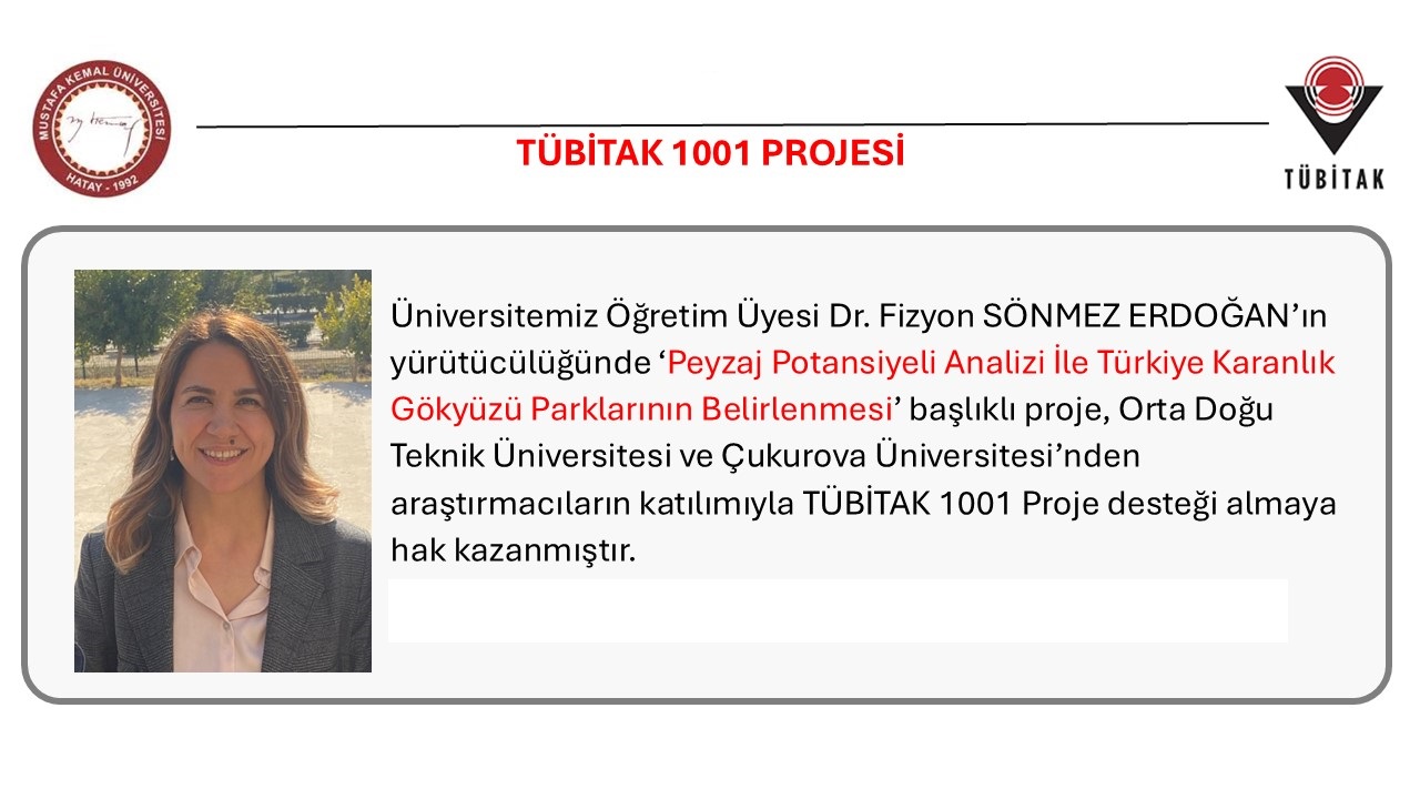 Fakültemiz Dr. Öğr. Üyesi Fizyon SÖNMEZ ERDOĞAN, TÜBİTAK 1001 Proje desteği almaya hak kazanmıştır.