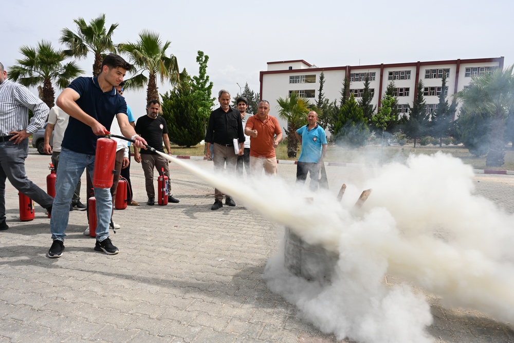 Üniversitenin temizlik ve güvenlik personelinin katılımıyla gerçekleşen tatbikatta, olası yangın anında can ve mal kaybının en aza indirilmesi ve acil durumlara karşı farkındalık oluşturulması hedeflendi.