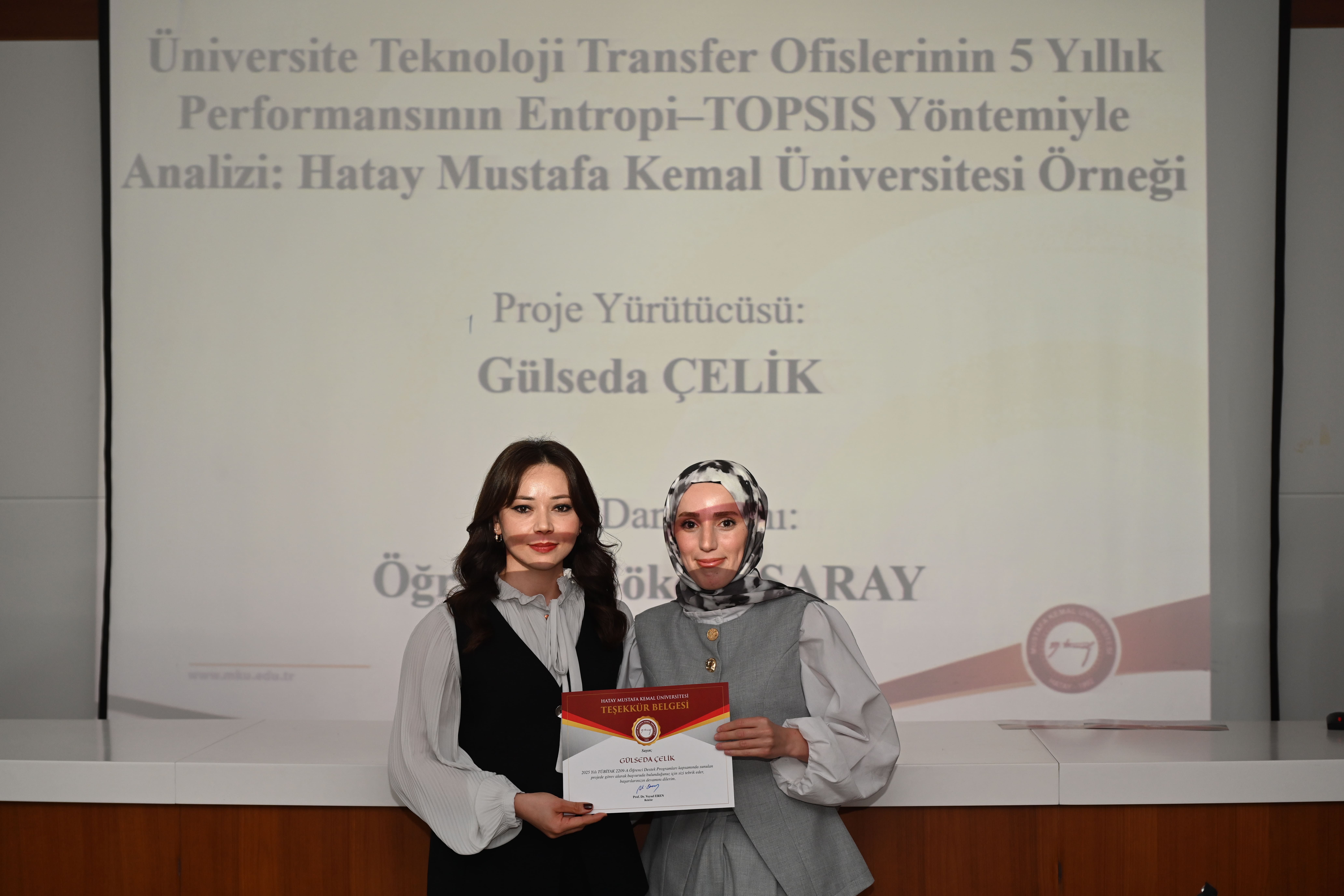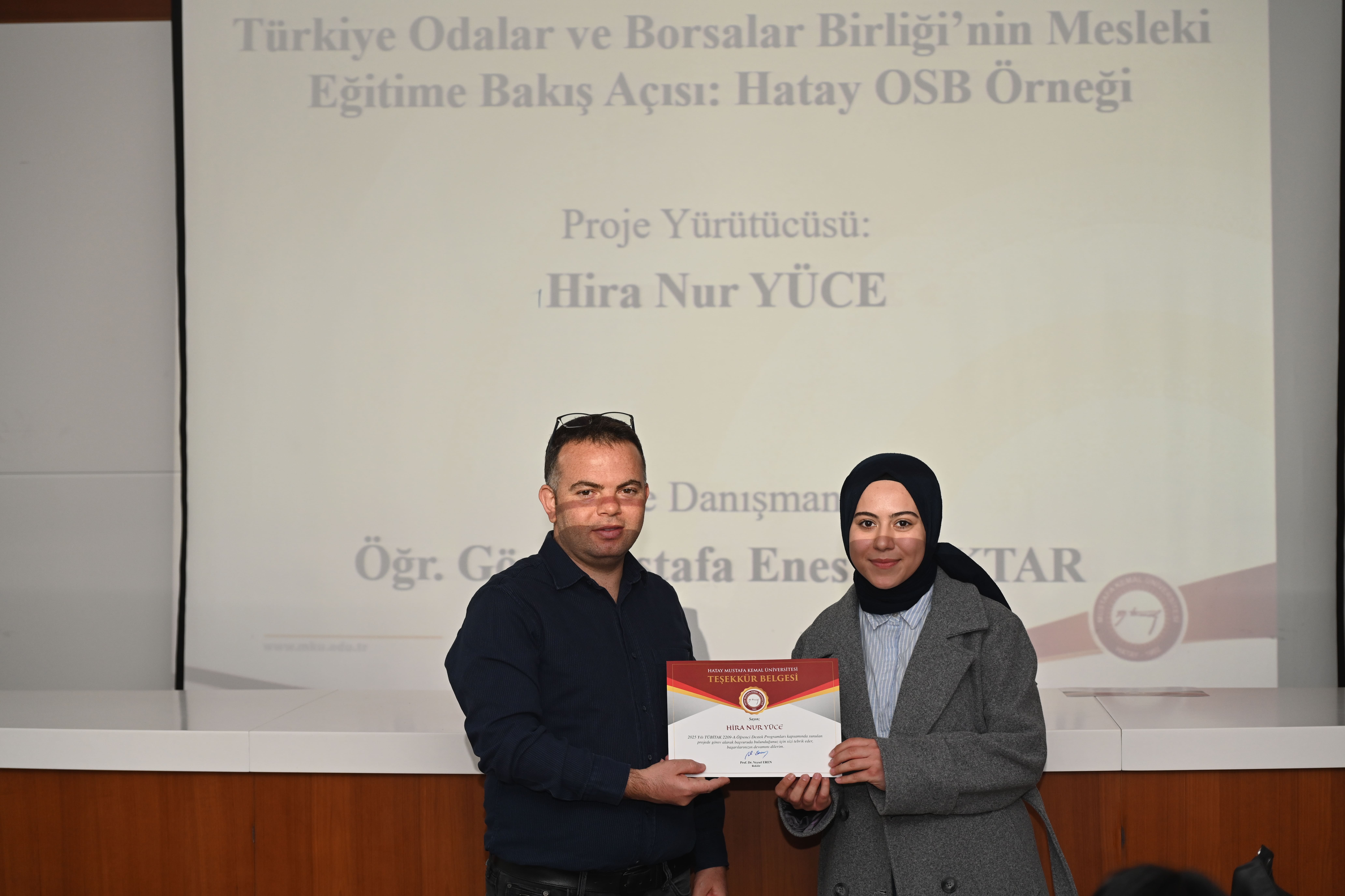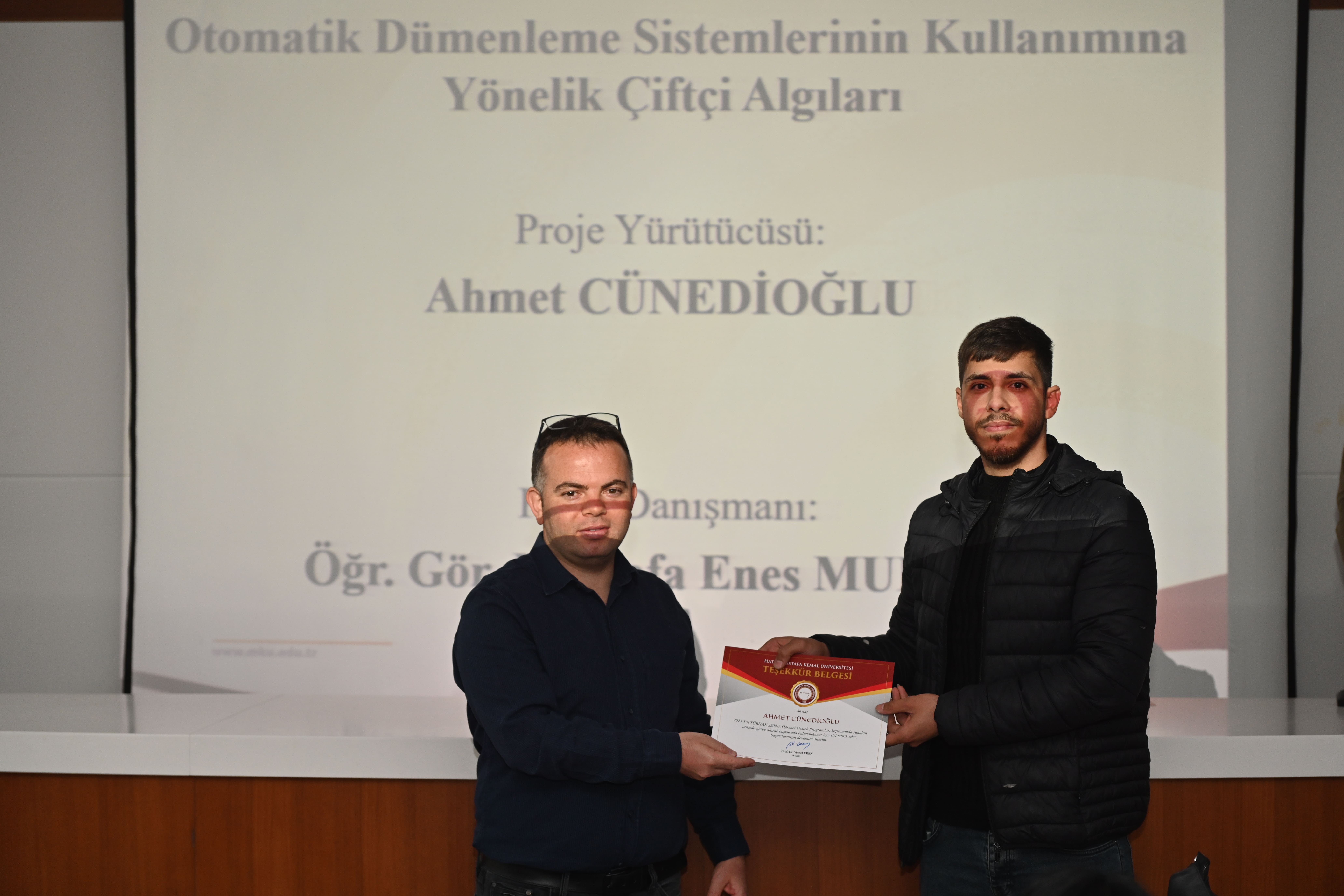 TÜBİTAK 2209-A Üniversite Öğrencileri Araştırma Projeleri Destekleme Programı kapsamında projeler üreten kıymetli öğrencilerimiz ve onlara akademik rehberlik eden değerli danışman hocalarımız için düzenlenen "Teşekkür Belgesi Takdim Töreni"ni gerçekleştirdik.