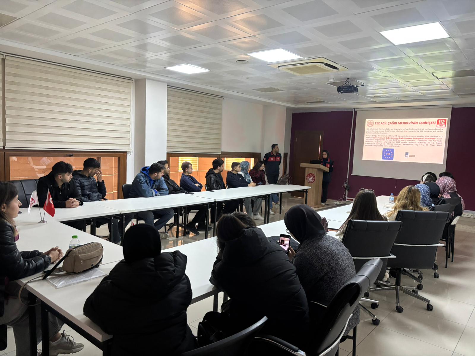 Hatay Mustafa Kemal Üniversitesi Hatay Sağlık Hizmetleri Meslek Yüksekokulu İlk ve Acil Yardım Programı 1. ve 2. sınıf öğrencileri, Öğr. Gör. Dr. Songül Demir koordinatörlüğünde Hatay 112 Acil Çağrı Merkezini ziyaret etti.